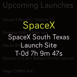 Inkl. Countdown, Missionsname, Raketenname, und Provider.