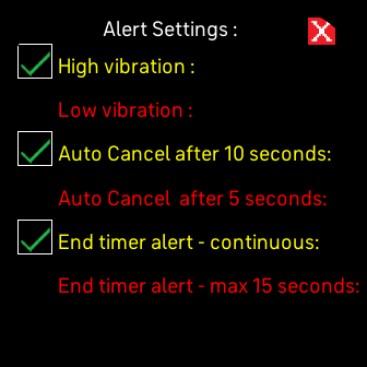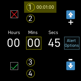 ➖ Green when selected, gives the option of setting a new countdown timer, or keeping the last used value.