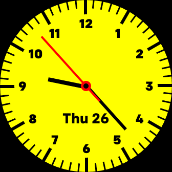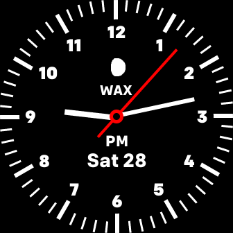 Simple Clock is a clock face displaying a very basic analog time display. Optional settings include different background colors, showing hour numbers, current date, lunar phase, and turning off the seconds hand.