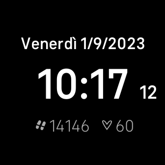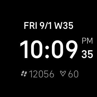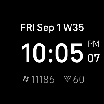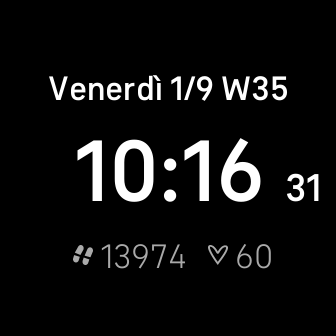 Un semplice orologio digitale che mostra data, numero della settimana, ora (ovviamente!), passi e frequenza cardiaca. Soprattutto può essere utile a qualcuno che deve tenere traccia delle cose in numeri settimanali.